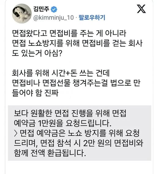 예약금 만원 내면 면접비 2만원 포함해서 3만원으로 돌려주는 건데 중소기업치고 괜찮지 않나 작성자 정보 GG요 작성 작성일 2026.03.12 12:12 컨텐츠 정보 501 조회 목록 본문 예약금 만원 내면 면접비 2만원 포함해서 3만원으로 돌려주는 건데 중소기업치고 괜찮지 않나 관련자료 댓글 0 등록된 댓글이 없습니다. 로그인한 회원만 댓글 등록이 가능합니다. 목록