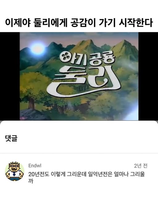 이제야 둘리에게 공감이 가기 시작한다 작성자 정보 GG요 작성 작성일 2026.04.01 12:51 컨텐츠 정보 95 조회 목록 본문 이제야 둘리에게 공감이 가기 시작한다 관련자료 댓글 0 등록된 댓글이 없습니다. 로그인한 회원만 댓글 등록이 가능합니다. 목록