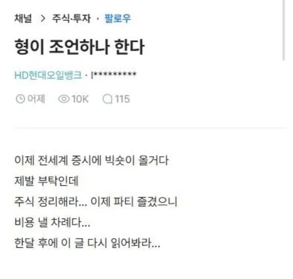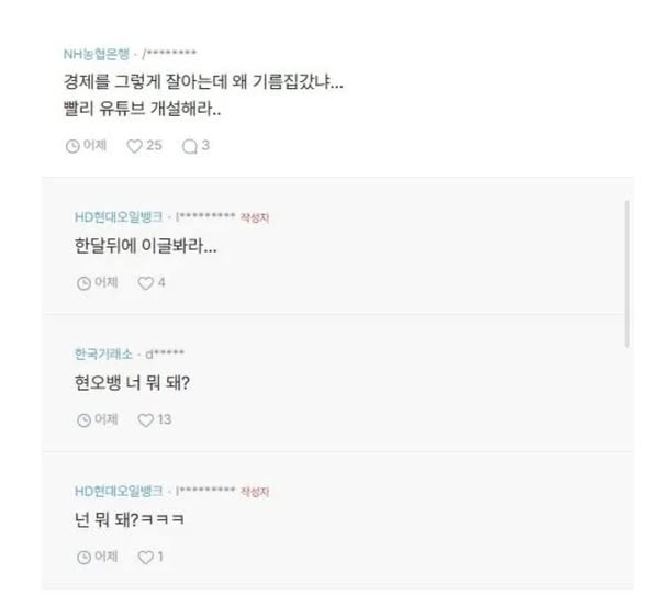 한국거래소 직원에게 넌뭐돼 시전한 현대오일뱅크 직원 작성자 정보 GG요 작성 작성일 2026.04.02 12:27 컨텐츠 정보 312 조회 목록 본문 한국거래소 직원에게 넌뭐돼 시전한 현대오일뱅크 직원 관련자료 댓글 0 등록된 댓글이 없습니다. 로그인한 회원만 댓글 등록이 가능합니다. 목록