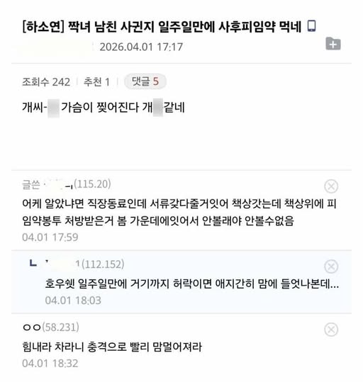 사후피임약은 그냥 받아서 한번 먹고 끝나는데 작성자 정보 GG요 작성 작성일 2026.04.04 12:50 컨텐츠 정보 244 조회 목록 본문 사후피임약은 그냥 받아서 한번 먹고 끝나는데 관련자료 댓글 0 등록된 댓글이 없습니다. 로그인한 회원만 댓글 등록이 가능합니다. 목록