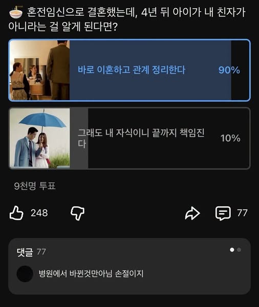 9천명이 투표한 혼전임신 후 친자가 아니었을때 반응 작성자 정보 gun총 작성 작성일 2026.04.20 12:12 컨텐츠 정보 466 조회 목록 본문 9천명이 투표한 혼전임신 후 친자가 아니었을때 반응 관련자료 댓글 0 등록된 댓글이 없습니다. 로그인한 회원만 댓글 등록이 가능합니다. 목록