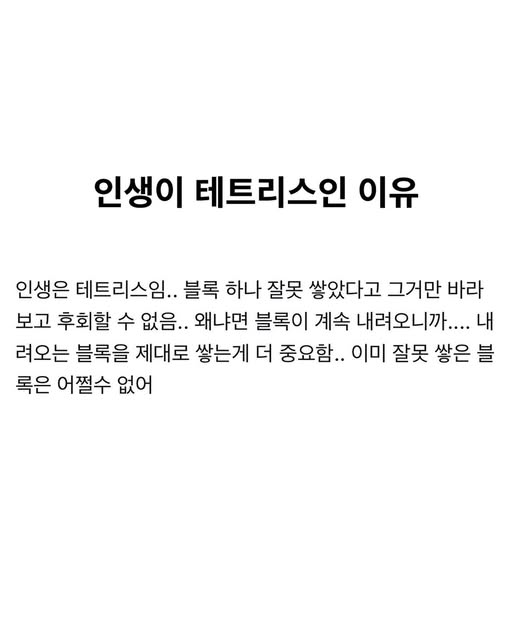 인생이 테트리스 작성자 정보 GG요 작성 작성일 2026.04.29 12:31 컨텐츠 정보 582 조회 목록 본문 인생이 테트리스 관련자료 댓글 0 등록된 댓글이 없습니다. 로그인한 회원만 댓글 등록이 가능합니다. 목록