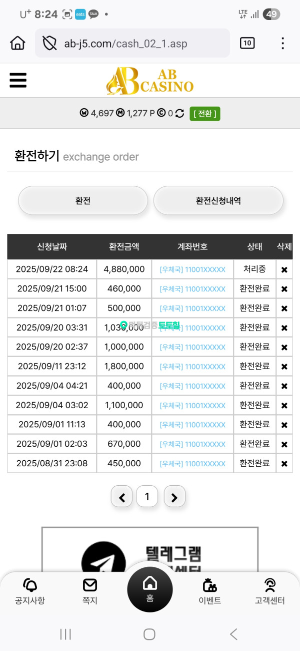 Ab카지노은(는) 먹튀사이트로 확인되므로 이용중단을 강력하게 권장합니다.