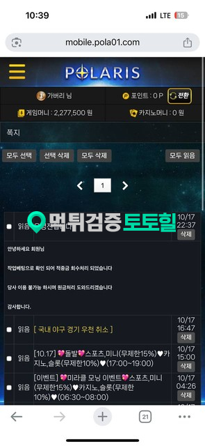 폴라리스 개 씨발먹튀 미겜 개실벳 하는대 환전 누르자마자 바로 작업드립치면서 아이디 바로짜르네요