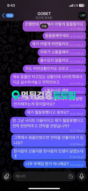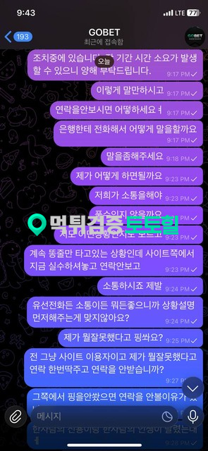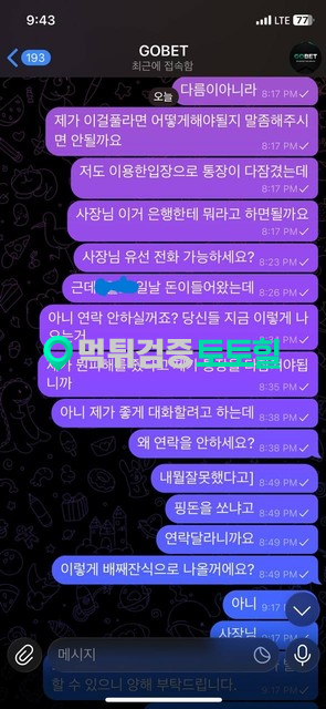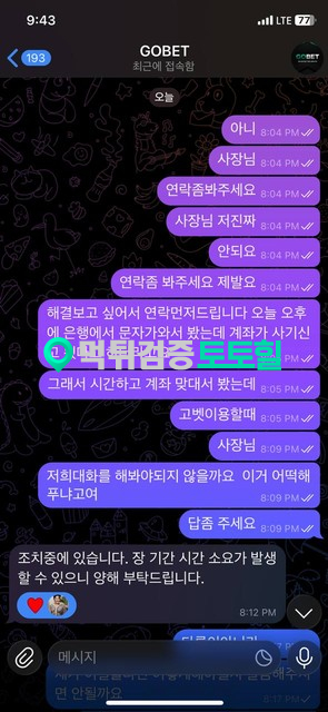 안녕하세요 고벳 핑돈피해자입니다 다른게 아니라 날짜가 벌써2달이 지난시점에서 제통장이 지급정지를 당했습니다 이용하는 사이트는 고벳 말고없습니다 고벳측에서는 연락을 다씹고 저랑대화를 안하려는거같습니다 사이트 믿고 이용한 이용자 한테 이사건에 대한 대책브리핑도 안해주고 연락도 안보고 저같은 다른 피해자들도 있을텐데 다른피해자들도 똑같은 상황을 겪을텐데 저희는 가만히 연락 기다려야되는겁니까 저는 대화를 할려고 하는건데 자꾸 연락피하기만 하시고 너무답답하네요 구멍가게아니라서 사용했는데 대처를 이렇게 하니까 너무 죽을꺼같아요 텔레그램주세요 당장