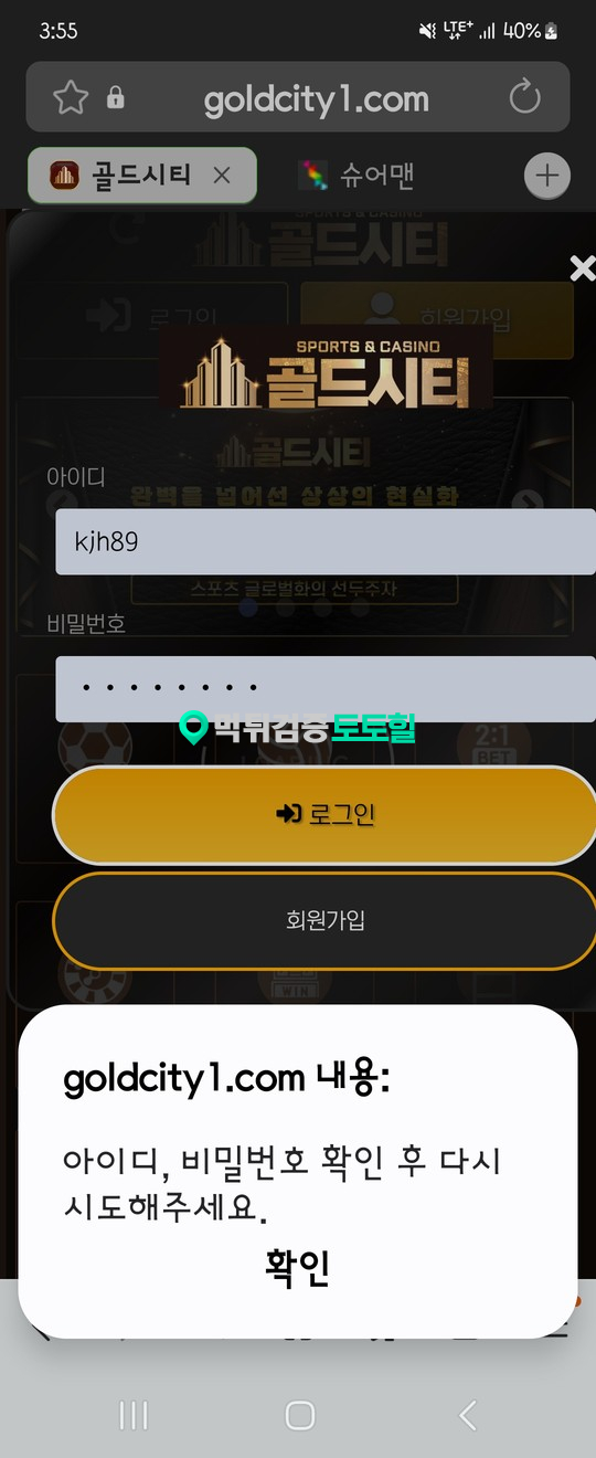 골드시티 작성자 정보 불법화음 작성 작성일 2025.10.29 18:26 컨텐츠 정보 130 조회 목록 본문 먹튀사이트 이름 골드시티 먹튀사이트 주소 http://goldcity1.com 피해금액 106(만)원 먹튀 증거자료 먹튀사이트 신고내용 골드시티에서 스포츠적중후 100만원 환전신청하니까 환전취소처리 하더니 1대1가상계좌 위탁업체에서 확인결과 44만원을 추가 입금하라고 영어 합니다. 캡쳐다땃으니 먹튀글올린다 하니 바로 세션종료되었다 뜨더니 로그인도 안됩니다 이딴 쓰레기업체 쓰지마세요 골드시티은(는) 먹튀사이트로 확인되므로 이용중단을 강력하게 권장합니다. 관련자료 댓글 0 등록된 댓글이 없습니다. 로그인한 회원만 댓글 등록이 가능합니다. 목록