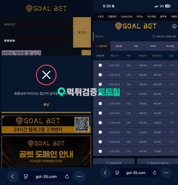 골벳은(는) 먹튀사이트로 확인되므로 이용중단을 강력하게 권장합니다.