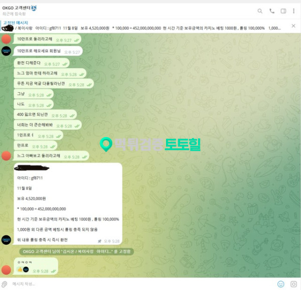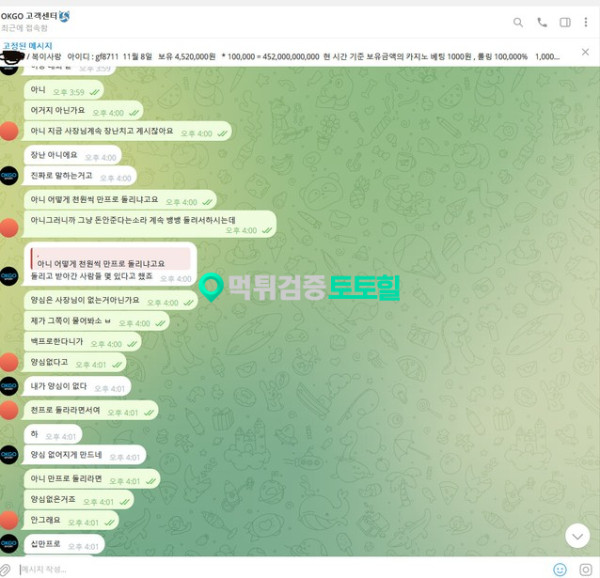 오케이고 작성자 정보 겐지 작성 작성일 2025.11.09 13:12 컨텐츠 정보 287 조회 목록 본문 먹튀사이트 이름 오케이고 먹튀사이트 주소 https://okgo33.com 피해금액 452(만)원 먹튀 증거자료 먹튀사이트 신고내용 돈주기 싫어서 먹튀하는 개 벌레사이트 오케이고입니다 롤링만프로 요구합니다 보유 4,520,000원 * 100,000 = 452,000,000,000 현 시간 기준 보유금액의 카지노 베팅 1000원 , 롤링 100,000% 1,000원 외 다른 금액 베팅시 롤링 충족 되지 않음 위 내용 롤링 충족 시 즉시 환전 오케이고은(는) 먹튀사이트로 확인되므로 이용중단을 강력하게 권장합니다. 관련자료 댓글 0 등록된 댓글이 없습니다. 로그인한 회원만 댓글 등록이 가능합니다. 목록