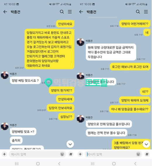 디스 작성자 정보 SEX하고싶다 작성 작성일 2025.11.22 12:44 컨텐츠 정보 81 조회 목록 본문 먹튀사이트 이름 디스 먹튀사이트 주소 http://th-001.com 피해금액 500(만)원 먹튀 증거자료 먹튀사이트 신고내용 3폴더 당첨 추가롤링 4폴치라고 하더니 갑자기 아이디 막아놓고 담당자 연락하라해서 연락했더니 양방이라고 당첨금 몰수한다고 하네요 저말고 다른분도 당하셨던데 같은놈한테 당한거 같네요 토토하시는분들 조심하세요 먹튀해서 돈 많이 벌어라;; 디스은(는) 먹튀사이트로 확인되므로 이용중단을 강력하게 권장합니다. 관련자료 댓글 0 등록된 댓글이 없습니다. 로그인한 회원만 댓글 등록이 가능합니다. 목록