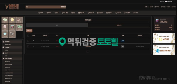밤비 가입해서 50만원씩 충전해서 쓰다가 스포츠 롤링 200%돌려서