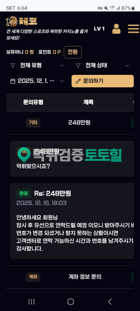 전화와서 다짜고짜 규정안읽어봤냐 양방드립 원금도몰수에 로얄올린다고 협박하더니 선심쓰는듯 원금은준다하면서 원금환.