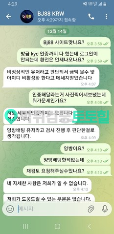 주니깐 로그인도 막히고 어찌저찌 텔레그램 찾아서 연락하지 양방이니