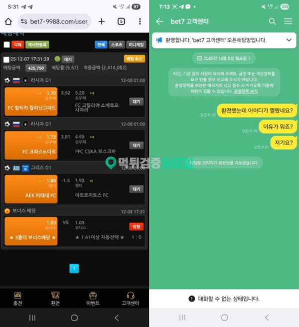 BET7 개 그지 사이트 작성자 정보 널따먹는다 작성 작성일 2025.12.20 12:09 컨텐츠 정보 94 조회 목록 본문 먹튀사이트 이름 BET7 먹튀사이트 주소 http://bet7-9988.com 피해금액 241(만)원 먹튀 증거자료 먹튀사이트 신고내용 BET7 개 그지 사이트입니다ㅡㅡ 돈 계속 잃고 있었고 돈 따서 환전누르니 사이트가 바로 안들어가지네요. 사이트 연락해도 연락 없고 총판한테 연락하니 총판도 해결도 안해주네요ㅡㅡ BET7은(는) 먹튀사이트로 확인되므로 이용중단을 강력하게 권장합니다. 관련자료 댓글 0 등록된 댓글이 없습니다. 로그인한 회원만 댓글 등록이 가능합니다. 목록