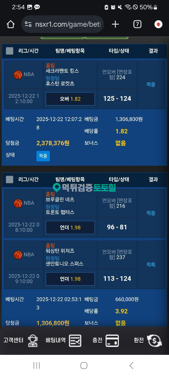 느바2경기 배팅했는데 1경기 적특났다며 300프로 롤링 요구