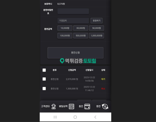 다음날 11시에 총괄 왈 2경기 1.7배당 올인배팅 하던가 48시간 대기하고 환전하라함