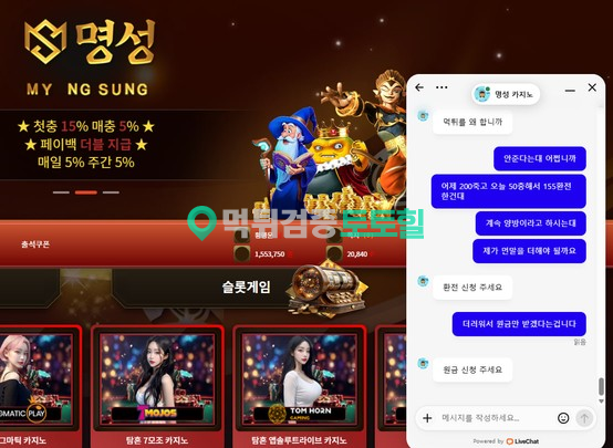 명성(구 아리아) 작성자 정보 노출 작성 작성일 2025.12.27 11:34 컨텐츠 정보 154 조회 목록 본문 먹튀사이트 이름 명성 먹튀사이트 주소 http://cash775.com 피해금액 155(만)원 먹튀 증거자료 먹튀사이트 신고내용 명성 어제 200꼴고 오늘 페이백10만원 바로 죽고 50충해서 155환전 했습니다 근대 계속 양방이라 의심하고 환전해주는척 하면서 장난치고 먹튀 바로 까네요 진짜 처음 가입했을때 첫매 이용안된다해서 그냥 이용했구요 자기들이 풀어주고 양방이라고 먹튀하네요 명성은(는) 먹튀사이트로 확인되므로 이용중단을 강력하게 권장합니다. 관련자료 댓글 0 등록된 댓글이 없습니다. 로그인한 회원만 댓글 등록이 가능합니다. 목록
