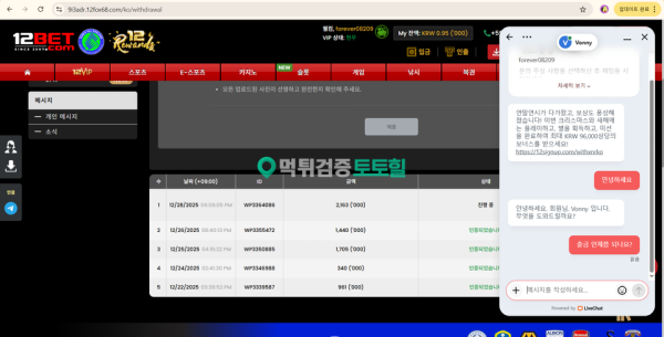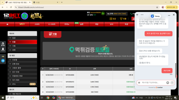 12벳은(는) 먹튀사이트로 확인되므로 이용중단을 강력하게 권장합니다.