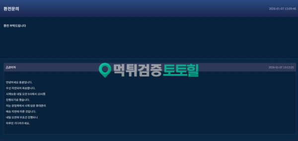 코타 작성자 정보 푸바오 작성 작성일 2026.01.09 12:10 컨텐츠 정보 1,421 조회 목록 본문 먹튀사이트 이름 코타 먹튀사이트 주소 http://box070.com 피해금액 620(만)원 먹튀 증거자료 먹튀사이트 신고내용 주말이벤트 준다고하길래 30충 받아서 1.7배 이상 두폴 걸었는데 그동안 미적난건 아무말도 없더니 두폴 적중난거 갑자기 양방이라며 당첨금액 전체 170만원 올배팅하라고함 그래서 두폴 올배팅했는데 당첨됨. 620만원 환전신청하니 계속 기다려달라 말만하더니 결국엔 사이트 못들어오게 차단 코타은(는) 먹튀사이트로 확인되므로 이용중단을 강력하게 권장합니다. 관련자료 댓글 0 등록된 댓글이 없습니다. 로그인한 회원만 댓글 등록이 가능합니다. 목록