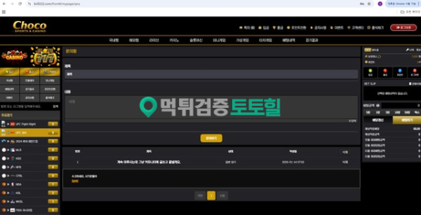초코 choco 83만원입먹 작성자 정보 거기너옐로카드 작성 작성일 2026.01.14 13:46 컨텐츠 정보 93 조회 목록 본문 먹튀사이트 이름 choco 먹튀사이트 주소 https://brill222.com/ 피해금액 83(만)원 먹튀 증거자료 먹튀사이트 신고내용 그냥 환전버튼 없습니다. 아마 커뮤에 글 안올라오게 하려고 시간 미루고 환전 미루는척 하려고 하는거같은데 그냥 입먹입니다. 벌써 12시간 기다렸어요. 절대 쓰지마세요. choco은(는) 먹튀사이트로 확인되므로 이용중단을 강력하게 권장합니다. 관련자료 댓글 0 등록된 댓글이 없습니다. 로그인한 회원만 댓글 등록이 가능합니다. 목록