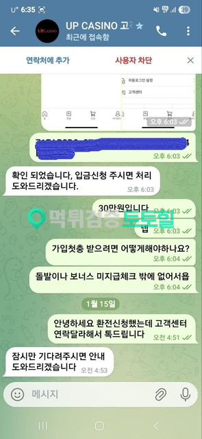 업카지노 작성자 정보 소리지르는니가 작성 작성일 2026.01.16 13:00 컨텐츠 정보 741 조회 1 댓글 목록 본문 먹튀사이트 이름 업카지노 먹튀사이트 주소 http://up-cc.com 피해금액 225(만)원 먹튀 증거자료 먹튀사이트 신고내용 업카지노 가입하고 입플받아서 축구 배팅해서 당첨됐는데 고객센터 연락달라 하더니 저렇게 ㅅ ㅔ컨 아이디로 연락와서 통장거래내역, 카톡 대화내용 증빙 하라고해서 다했는데 당첨금 먹 당했습니다,,,,,,, 업카지노은(는) 먹튀사이트로 확인되므로 이용중단을 강력하게 권장합니다. 관련자료 댓글 1 원픽77님의 댓글 원픽77 작성일 20:36 거지세끼들 추천0비추천0 거지세끼들 로그인한 회원만 댓글 등록이 가능합니다. 목록