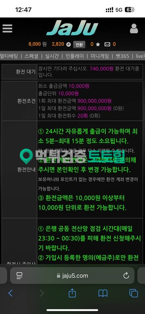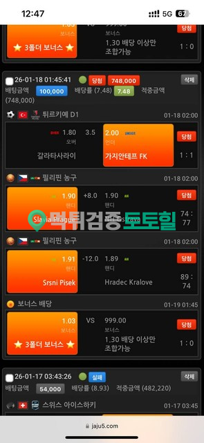 자주벳 작성자 정보 젝스 작성 작성일 2026.01.19 19:32 컨텐츠 정보 424 조회 1 댓글 목록 본문 먹튀사이트 이름 자주벳 먹튀사이트 주소 http://jaju5.com 피해금액 74(만)원 먹튀 증거자료 먹튀사이트 신고내용 자주 자주벳 74만원 먹튀났습니다 10+5 받아서 규정대로 분할베팅후 한박스74만원당첨 되었는데 환전도 안나오고 고객센터 24시간 이상답변도 없네요 ㅋㅋ 카카오페이 tt11 피해금 74만원 원금 10만원 텔레고객센터도없는 구멍가게였네요 이용중지하세요 자주벳은(는) 먹튀사이트로 확인되므로 이용중단을 강력하게 권장합니다. 관련자료 댓글 1 어캐했노님의 댓글 어캐했노 작성일 19:39 으 그지깽깽이 추천0비추천0 으 그지깽깽이 로그인한 회원만 댓글 등록이 가능합니다. 목록