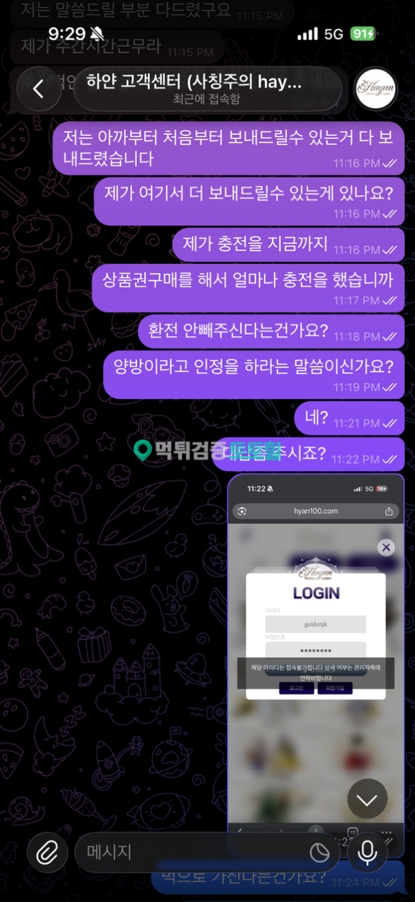 하얀 작성자 정보 들오빠 작성 작성일 2026.01.28 12:35 컨텐츠 정보 546 조회 목록 본문 먹튀사이트 이름 하얀 먹튀사이트 주소 hyan100.com 피해금액 2,100(만)원 먹튀 증거자료 먹튀사이트 신고내용 총 충전 금액 2600 만원 2500만원 죽어있는 상태에서 마지막 충전 100만원해서 2100만원 만들었는데 2100만원 환전 취소 되더니 원하는 요구대로 동영상 찍고 원하는대로 다보내줬는데 양방이라는 핑계로 인해서 먹튀를 해버리네요 상품권 충전방식 하는 하얀 쓰지마세요 저말고 다른분들은 절대 피해없길 바랍니다. 하얀은(는) 먹튀사이트로 확인되므로 이용중단을 강력하게 권장합니다. 관련자료 댓글 0 등록된 댓글이 없습니다. 로그인한 회원만 댓글 등록이 가능합니다. 목록