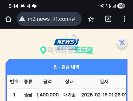 | 먹튀사이트 주소 | http://www.news-91.com/ |