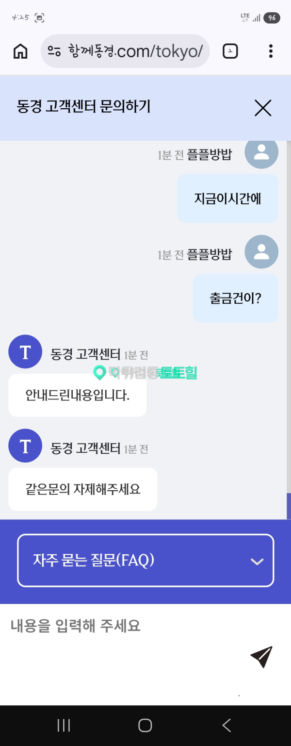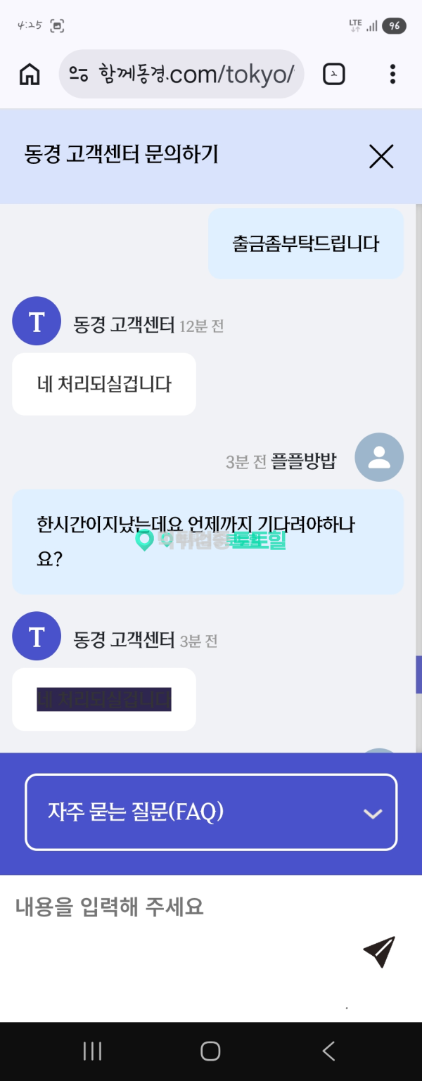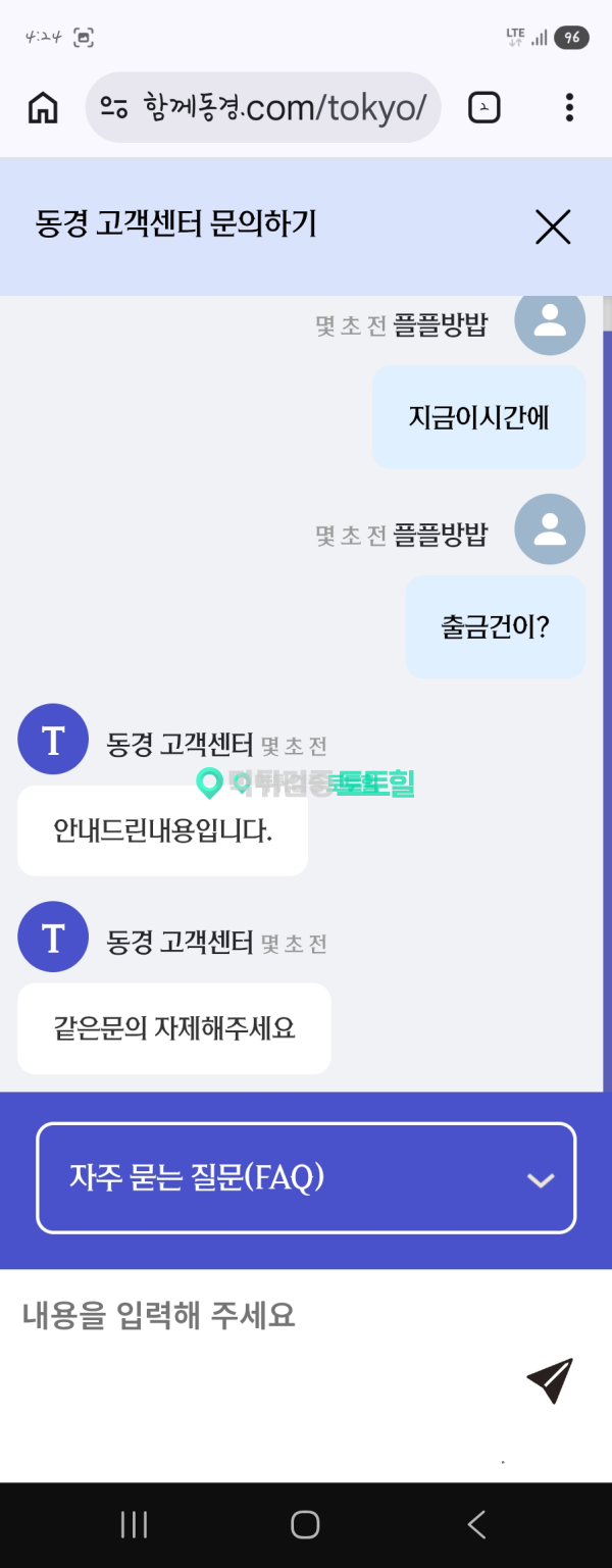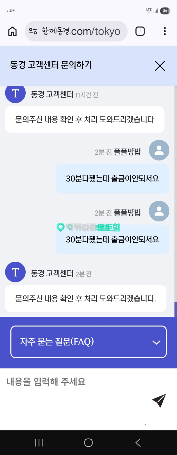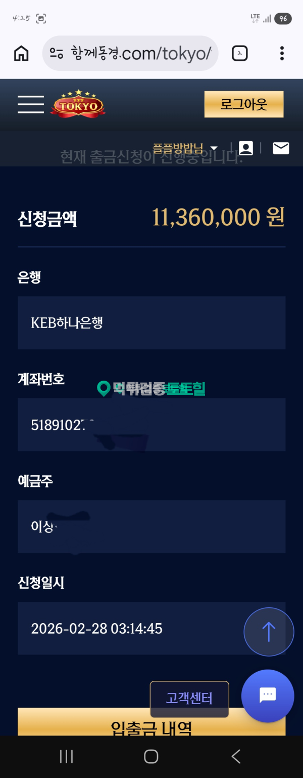 오늘 새벽에당했네요 작성자 정보 동경카지노먹튀 작성 작성일 2026.02.28 12:59 컨텐츠 정보 10,825 조회 목록 본문 먹튀사이트 이름 동경카지노 먹튀사이트 주소 함께동경.com 피해금액 1,136(만)원 먹튀 증거자료 먹튀사이트 신고내용 새벽에 먹튀를 이용은 오래했구요 안하다가 다시하긴함 300 만원잃고 추가로500만원입금. 엎치락뒷치락하다 결국1136만원만듬. 출금신청함 30분동안 출금 안되길래 문의함 처리해준다고함 한시간 넘어감 이때부터 쎄함 같은 문의하지마라 함 결국 차단. 돈은주고 차단해라 동경카지노은(는) 먹튀사이트로 확인되므로 이용중단을 강력하게 권장합니다. 관련자료 서명 이상화 댓글 0 등록된 댓글이 없습니다. 로그인한 회원만 댓글 등록이 가능합니다. 목록