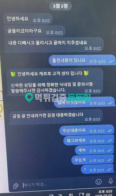 케로로 작성자 정보 아몰랑 작성 작성일 2026.03.04 12:18 컨텐츠 정보 12,503 조회 목록 본문 먹튀사이트 이름 케로로 먹튀사이트 주소 https://keroro365.com/ 피해금액 130(만)원 먹튀 증거자료 먹튀사이트 신고내용 자기들이 찝찝하니 그런것같은데 자정까지 글 안지우면 강력대응한다고 협박하네요 핑돈 쏘지않을까 싶어 지금 진짜 무서워도 글 올립니다. 저는 진짜 어이가없습니다 형님들 케로로 이용중단입니다 케로로은(는) 먹튀사이트로 확인되므로 이용중단을 강력하게 권장합니다. 관련자료 댓글 0 등록된 댓글이 없습니다. 로그인한 회원만 댓글 등록이 가능합니다. 목록
