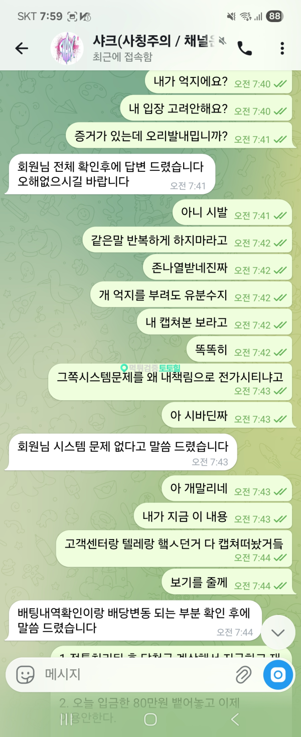 바로 고객센터/텔레그램 문의했는데 돌아오는 답변은 저런식이네요.저렇게 증거가있는데도