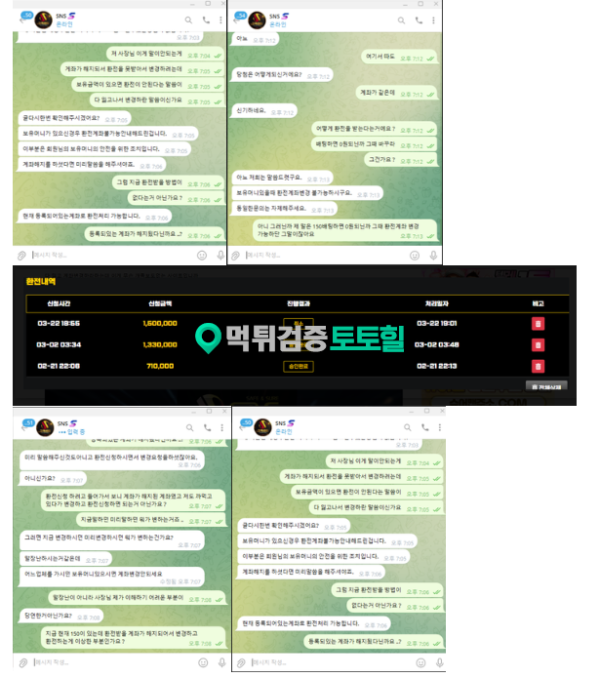 sns 작성자 정보 왕쟈지 작성 작성일 2026.03.29 12:40 컨텐츠 정보 457 조회 목록 본문 먹튀사이트 이름 sns 먹튀사이트 주소 http://sns868.com 피해금액 320(만)원 먹튀 증거자료 먹튀사이트 신고내용 당첨되고 환전하려는데 입금계좌 해지되서 변경하고 환전해달라니 보유금액 0원만들고 환전신청하라고 합니다 다 잃고 계좌변경하라하는데 이게 무슨 개족보도없는 사이트입니까 sns은(는) 먹튀사이트로 확인되므로 이용중단을 강력하게 권장합니다. 관련자료 댓글 0 등록된 댓글이 없습니다. 로그인한 회원만 댓글 등록이 가능합니다. 목록