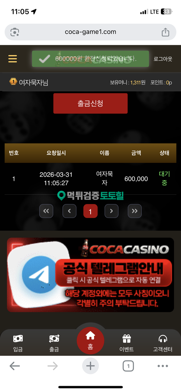 코카카지노 작성자 정보 왼발슛 작성 작성일 2026.03.31 14:07 컨텐츠 정보 398 조회 목록 본문 먹튀사이트 이름 코카카지노 먹튀사이트 주소 https://coca-game1.com/ 피해금액 60(만)원 먹튀 증거자료 먹튀사이트 신고내용 20만원 충전후 실벳을로 3폴 입플받아서 3폴 14/14 각각 때려서 하나맞으니까 총판 바로 텔레 차단하고 사이트도 바로 차단박음 형들 실벳 때려ㅆ는데 이러네요ㅡㅡ형들 항상 달았습니다 한범만 다들 도와주세요...!! 코카카지노은(는) 먹튀사이트로 확인되므로 이용중단을 강력하게 권장합니다. 관련자료 댓글 0 등록된 댓글이 없습니다. 로그인한 회원만 댓글 등록이 가능합니다. 목록