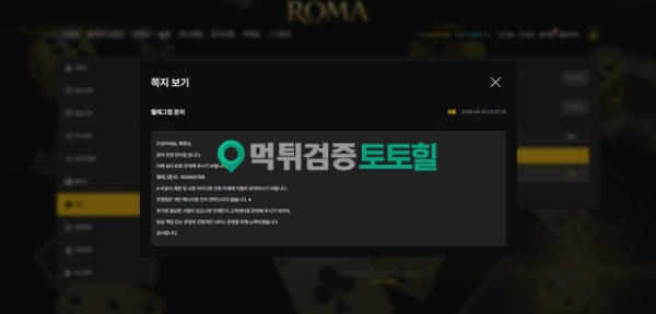 로마은(는) 먹튀사이트로 확인되므로 이용중단을 강력하게 권장합니다.
