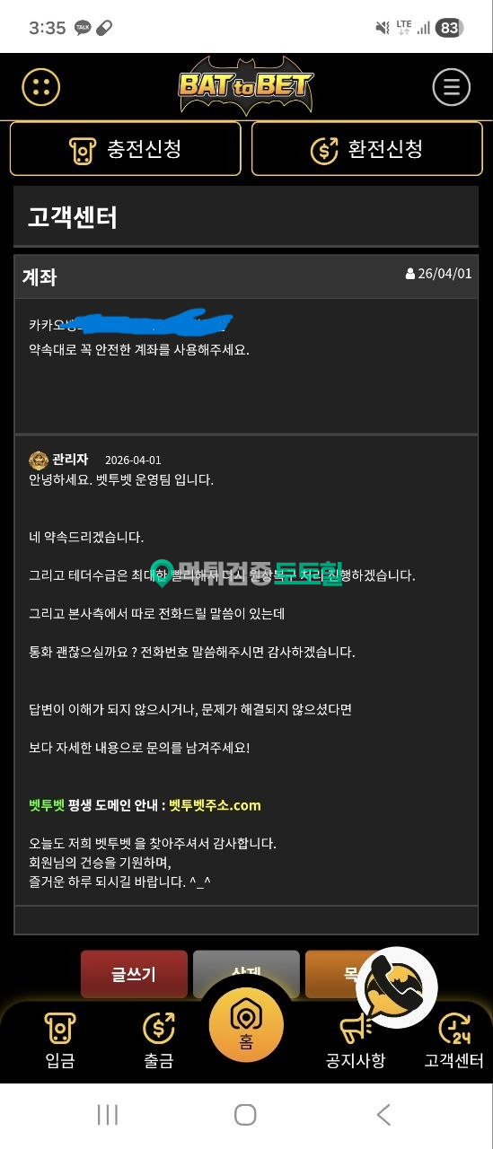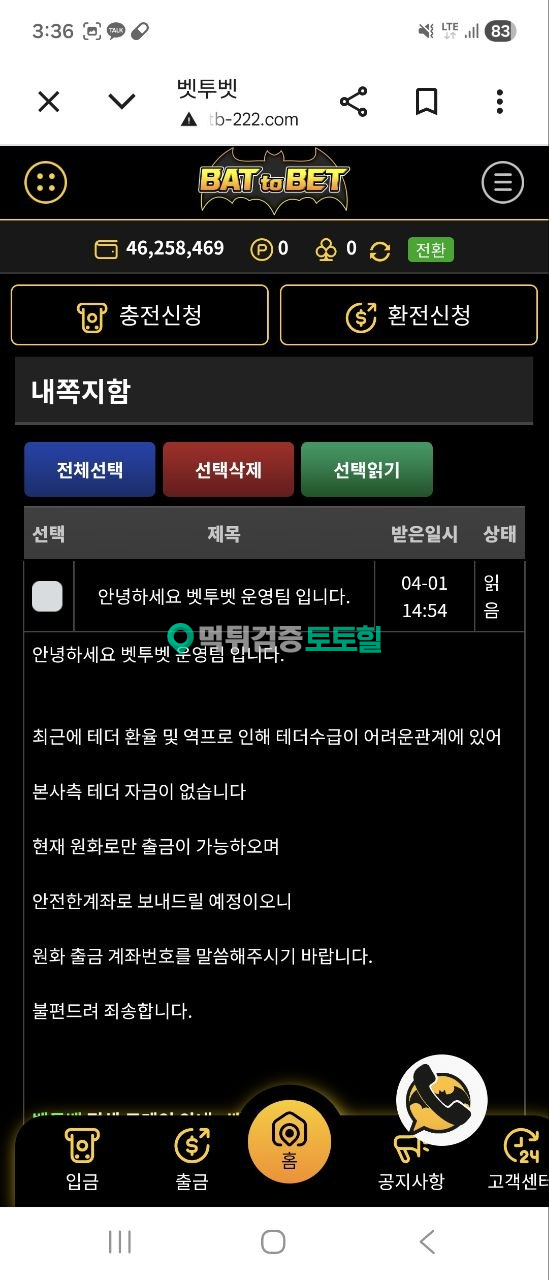 벳투벳은(는) 먹튀사이트로 확인되므로 이용중단을 강력하게 권장합니다.