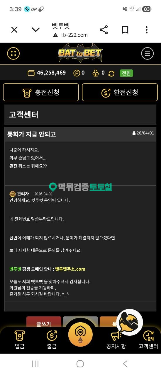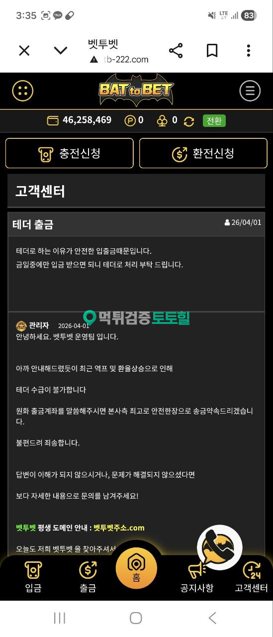 벳투벳 (btb-222.com) 4625만원 먹튀