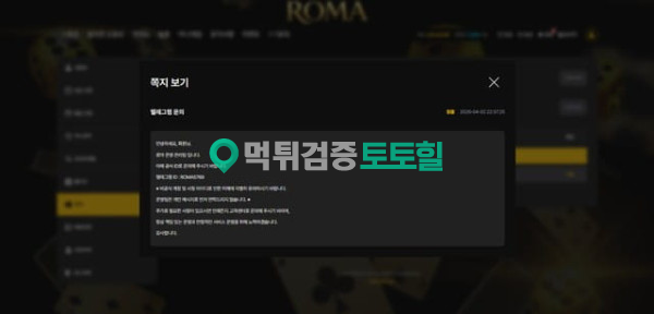 | 먹튀사이트 주소 | https://roma-11.com/ |