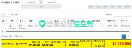 25년 6월9일부터 지금까지 정산금 처리가안되고있는곳입니다.