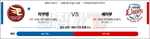 【NPB프로야구】09월21일 라쿠텐 vs 세이부
