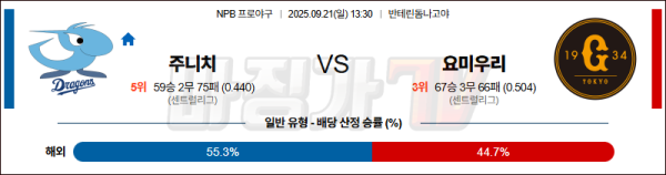 【NPB프로야구】09월21일 주니치 vs 요미우리