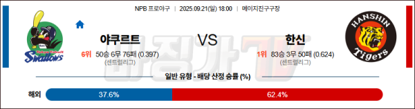 【NPB프로야구】09월21일 야쿠르트 vs 한신
