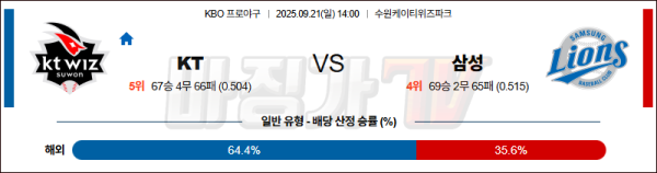 KT는 무려 폰세의 연승 행진을 막아내는데 성공했다. 그러나 엄밀히 말하면 안현민의 원맨쇼라는걸 생각해야 할듯. 반면 삼성은 타선 전체가 폭발했다는 점이 포인트다. 최근의 헤이수스는 5월의 좋지 않은 모습이 나오고 있고 이는 삼성이 충분히 해볼만한 포인트. 물론 양창섭 역시 선발로서 기대가 안되는 투수지만 화력전으로 가면 유리한건 삼성이다. 힘에서 앞선 삼성이 승리를 가져갈 것이다.