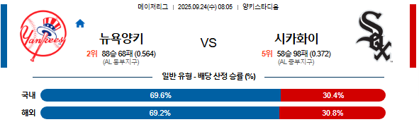 2025-09-24 08:05 MLB 뉴욕양키스 vs 시카고W