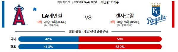 2025-09-24 10:38 MLB LA에인절스 vs 캔자스시티