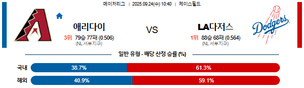 2025-09-24 10:40 MLB 애리조나 vs LA다저스