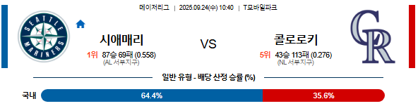 2025-09-24 10:40 MLB 시애틀 vs 콜로라도