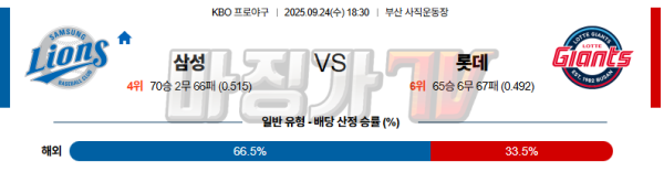 전날 경기에서 삼성은 타선이 살아난 모습을 보여준 반면 롯데는 타격감이 가라앉아버렸다. 현재의 타격으로 후라도 공략은 솔직히 쉽지 않은게 현실일듯. 반면 삼성의 타선은 장타력이 홈에서 되살아났다는 점이 가장 큰 강점이고 불펜의 안정감 역시 나쁘지 않다. 무엇보다 박진이 버티기 힘들어 보인다. 선발에서 앞선 삼성이 승리를 가져갈 것이다.