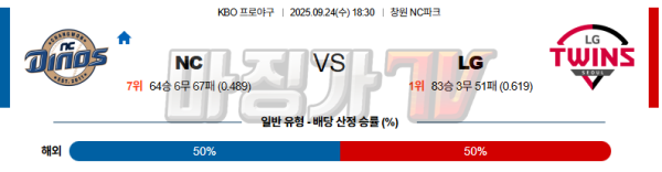 전날 NC의 집중력은 훌륭했다. 하지만 LG와 롯데의 불펜 레벨이 다르다는게 포인트. 거기에 송승기는 지난 경기를 고려한다면 반등의 가능성이 높은 편. 구창모는 3이닝은 완벽히 막아줄수 있겠지만 문제는 그 뒤가 없고 송승기는 이닝 소화력도 좋고 그 뒤도 있다. 전력에서 앞선 LG가 승리를 가져갈 것이다.