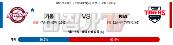 전날 경기에서 KIA는 본격적으로 패배 & 경험치 프로젝트를 가동하기 시작했다. 이 흐름으로 하영민을 공략하는건 매우 힘들듯. 올러가 어떻게 버텨주느냐에 따라 이야기가 달라지겠지만 올러의 기복을 고려한다면 이번 경기는 고전 가능성이 높고 KIA의 불펜도 이제 주력을 돌릴 가능성은 낮다. 힘에서 앞선 키움이 승리를 가져갈 것이다.