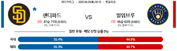2025-09-25 05:10 MLB 샌디에이고 vs 밀워키