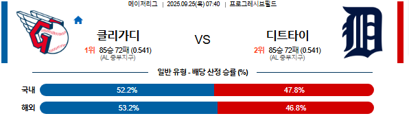 2025-09-25 07:40 MLB 클리블랜드 vs 디트로이트
